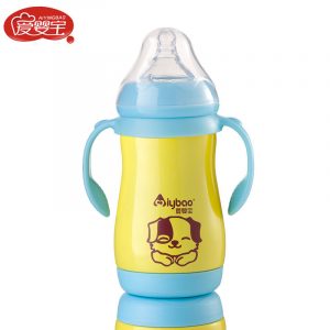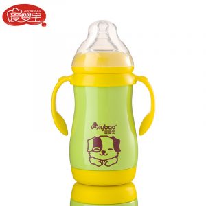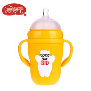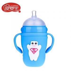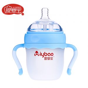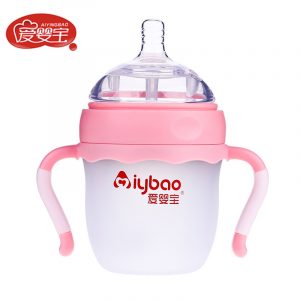 Aiyingbao's new wide-mouth silicone bottle with two-color handle and straw for flatulence prevention bottle 160ml/260ml.