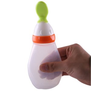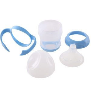 Aiyinbao New Wide Mouth Silicone Milk Bottle with Dual Color Handle and Straw Anti Inflation Milk Bottle 160ml/260ml