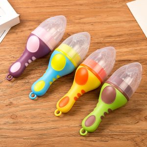 Aiyingbao two-color baby silicone food bite music baby complementary food bite bag torch hand-held fruit and vegetable music