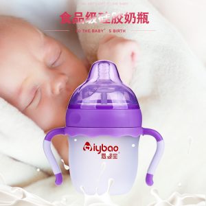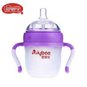 Aiyingbao's new wide-mouth silicone bottle with two-color handle and straw for flatulence prevention bottle 160ml/260ml.
